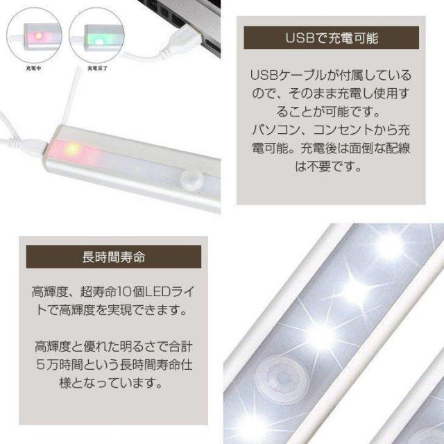 ★【USB充電式】頻繁に電池交換は要らない!中身は2835-LED10個ありますので、寿命は8000時間が有ります。。それに一回充電して一か月ぐらい使用対応可。