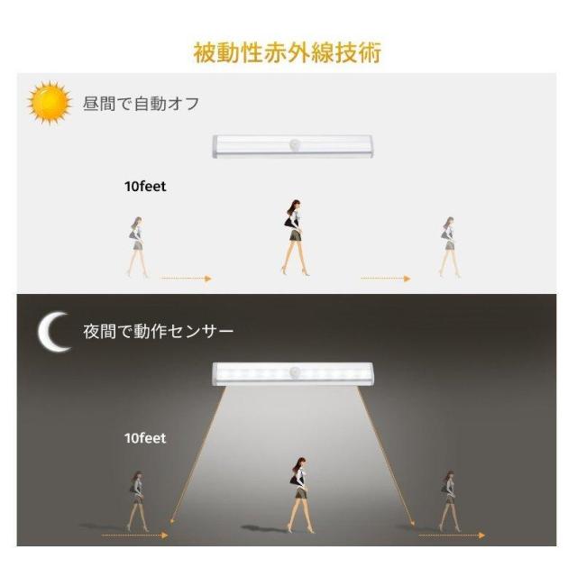 ★【LED人体センサー検知】スイッチをONにすると、人が3?5m以内に入ると自動的に点灯し、人が離れてから約15~20秒後に自動的に消灯します。