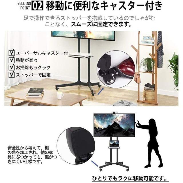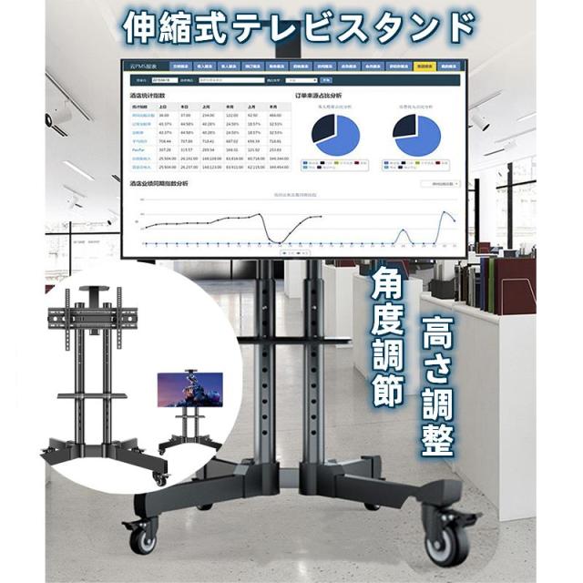 即日発送 伸縮式テレビスタンド テレビ台 大型テレビ 移動式 高さ調節可能 角度調節 コード収納 棚板付き 液晶TVスタンド 家用 展示用