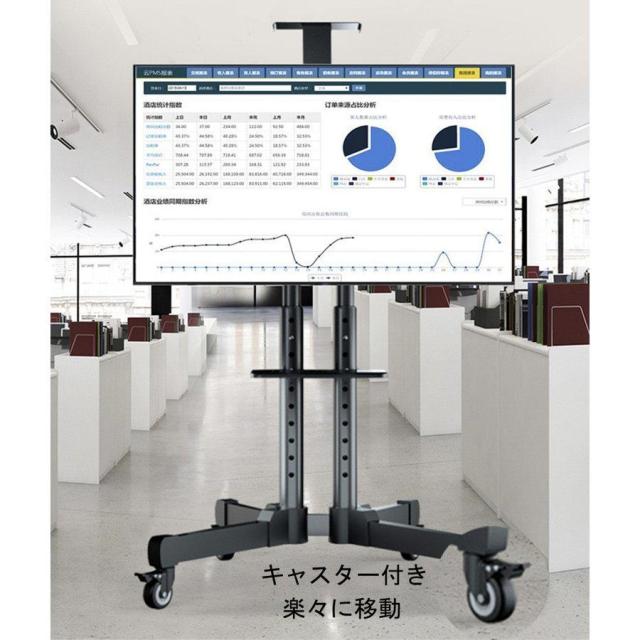 テレビスタンド テレビ台 TV ハイタイプ モニタースタンド 大型テレビ キャスター付き 移動式 壁寄せテレビスタンド 高さ調整 角度調節 ディスプレイスタンド コード収納 棚板付き 液晶TVスタンド 家用 展示用