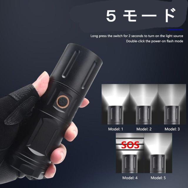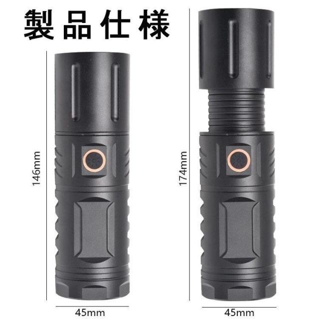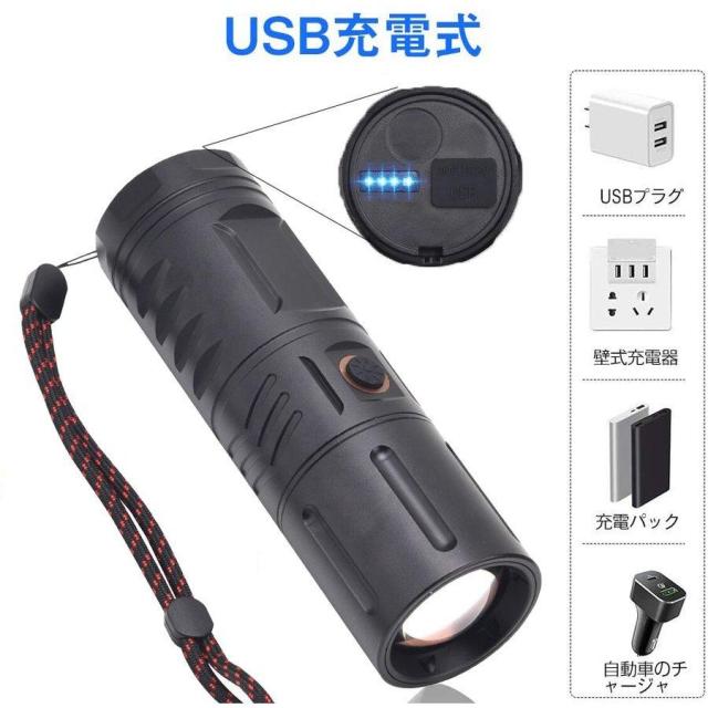 即日発送 懐中電灯 LED 充電式 強力 LEDライト ハンディライト ズーム機能 充電式 多モード 小型 軍用 作業灯 停電 爆光 防災