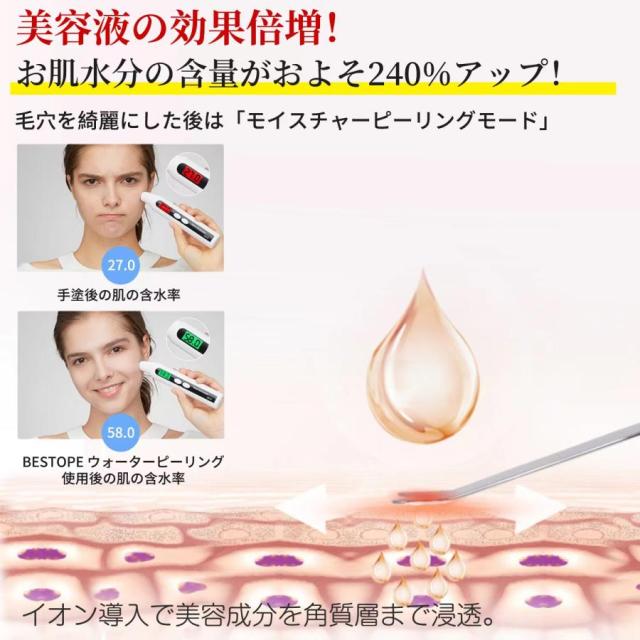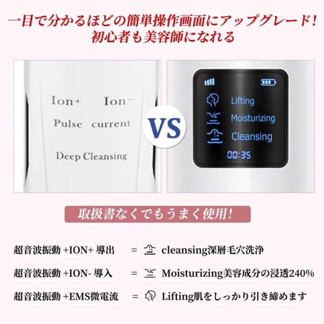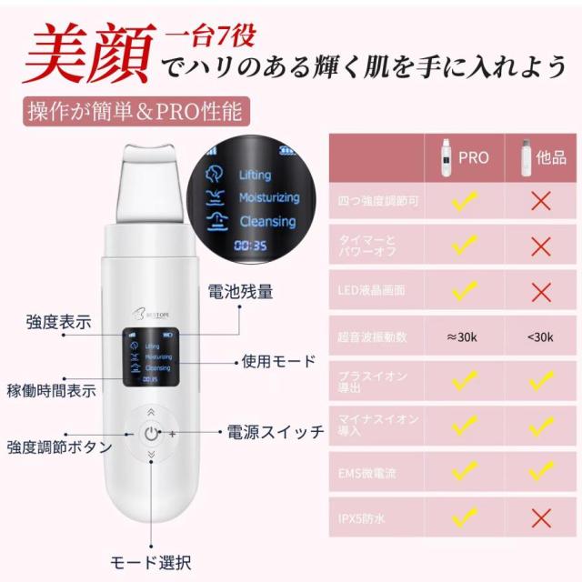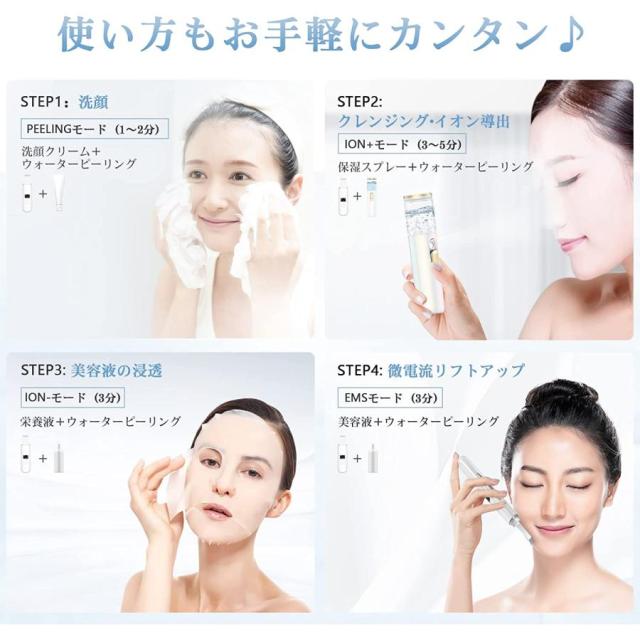 即日発送 多機能美顔器 ウォーターピーリング 温熱ケア 超音波ピーリング 美顔器 スマートピール 超音波振動 EMS微電流 汚れ除去 生活防水 日本語説明書付き