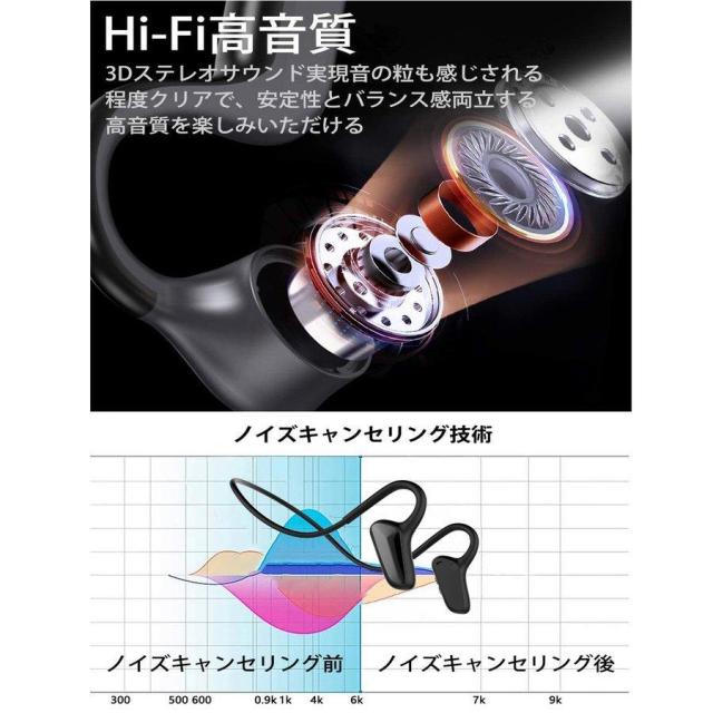 即日発送 骨伝導 イヤホン Bluetooth ワイヤレス マイク付き ヘッドホンスポーツ型 絶対落ちない 両耳通話キャンセリング IPX6防水 iPhone/Android適用