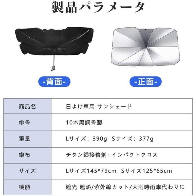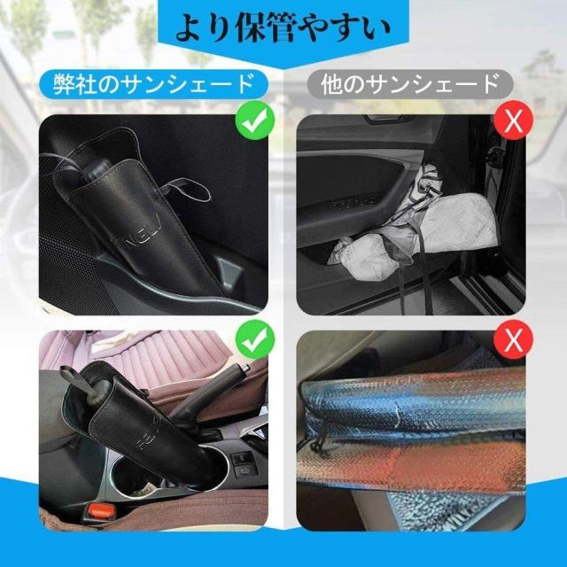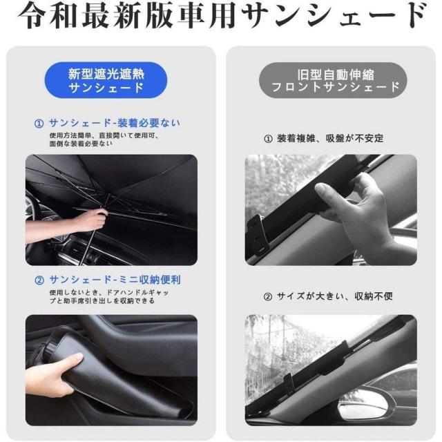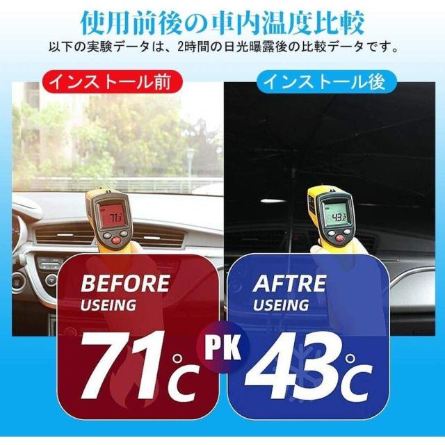 【遮光遮熱機能性】 この車用サンシェードは日本製の効率的な複合チタン銀接着剤を採用し、99.5%の紫外線を効果的に遮断し、高品質のインパクトクロス+チタンシルバー接着剤を使用した車用サンシェードは、熱を遮断して太陽光を反射し、車内の温度を効果的に下げ、ダメージや経年劣化を防ぎます。駐車時の大事な車を太陽光による損傷やハンドル焼け、ダッシュボードなどの樹脂部分の日焼けからしっかりと守ります。車内の温度を軽減し、エアコンへの負荷がへり、省燃費が向上します。内装劣化防止、駐車の度に気持ちをより涼しくしてくれます。