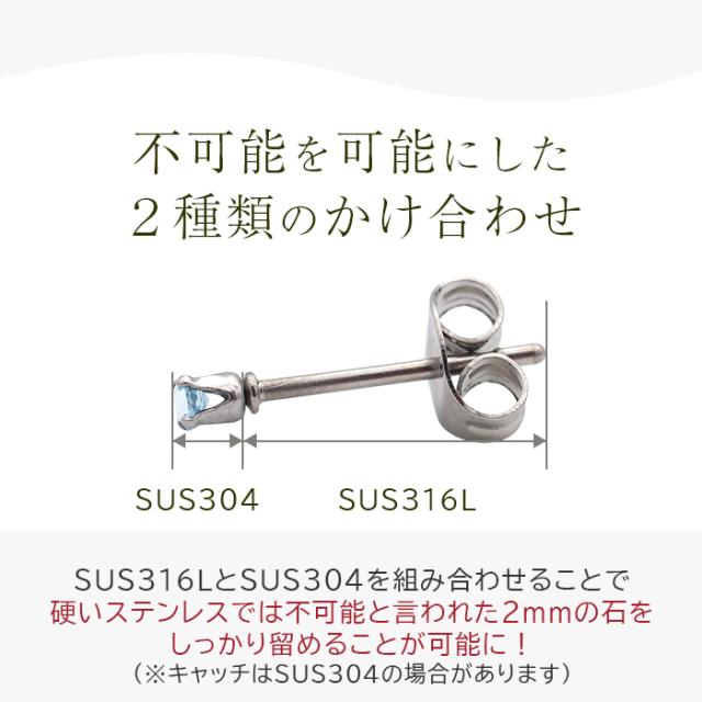 | ステンレス316L&304、2.0mm 天然石1石 キャッチ:ステンレス316Lまたは304 |