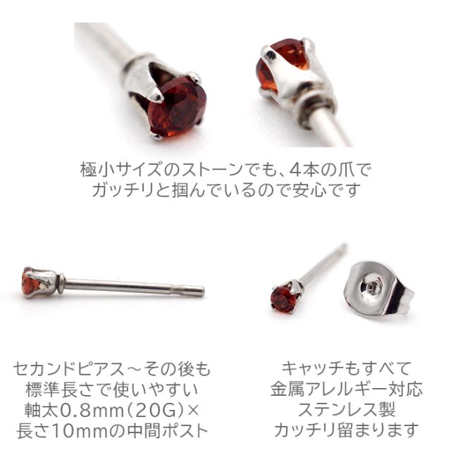 セカンドピアス つけっぱなし ピアス 極小 天然石 2mm 一粒 軸太 金属アレルギー対応 ステンレス 医療用 サージカル 片耳 1個