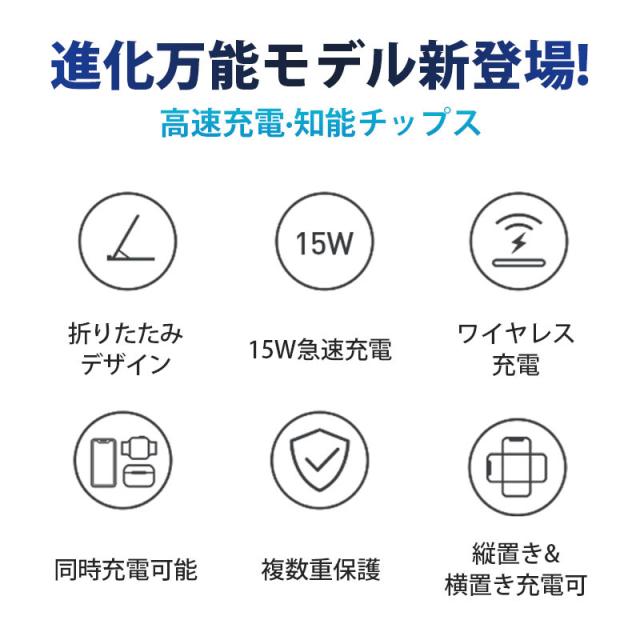 15W高速充電仕様、折りたたみ可、収納や持ち運び便利です。