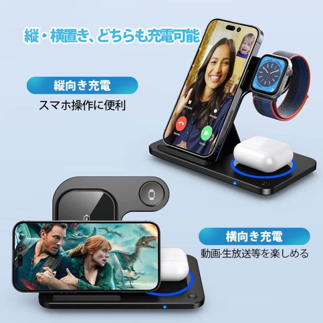 即納 ワイヤレス充電器 3in1 15w iPhone 充電スタンド 折り畳み ワイヤレスチャージャー Airpods Qi急速充電 apple watch