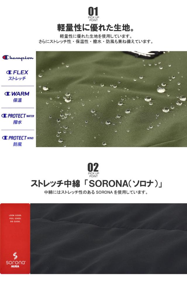 軽量性に優れた生地を使用し、ストレッチ中綿「SORONA(ソロナ)」を採用した
