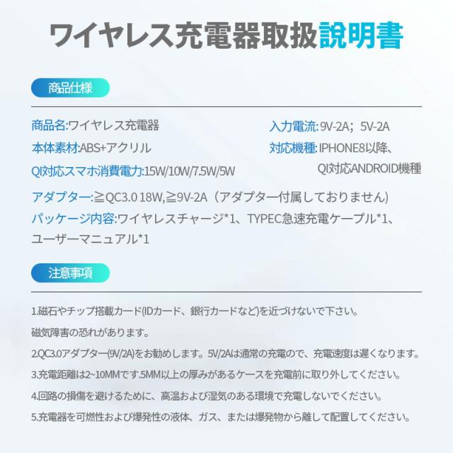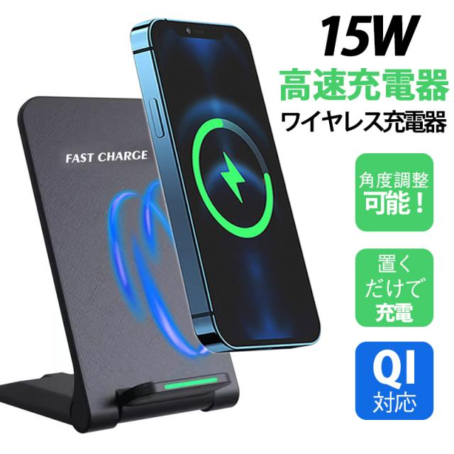 ワイヤレス充電器 15w iPhone 15 14 13 12 Andriod 置くだけ 充電スタンド 充電器 ワイヤレスチャージ