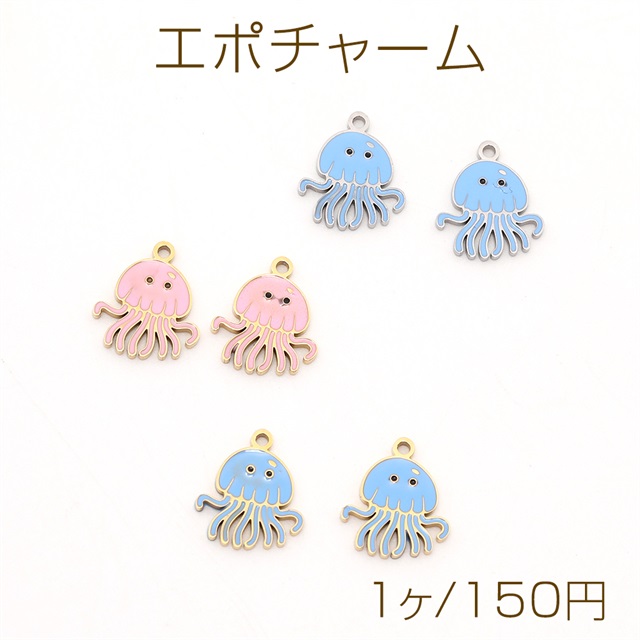 色褪せないステンレス製チャーム 立体くらげチャーム クラゲチャーム 海の生き物チャーム 丸カンあり カン付き 9×10mm(1ヶ)