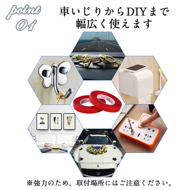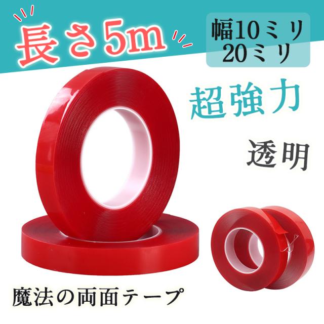 強力両面テープ 透明 クリア 超強力 魔法のテープ はがせる 5メートル 5M 車用 床 賃貸 屋外 マジックテープ クッションフ