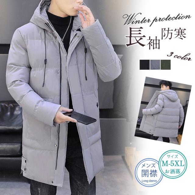 メンズ ロングコート フード付き ジャケット 中綿入り 防寒 秋冬 暖かい アウター 寒さ対策 冷え取り カジュアル おしゃれ 男