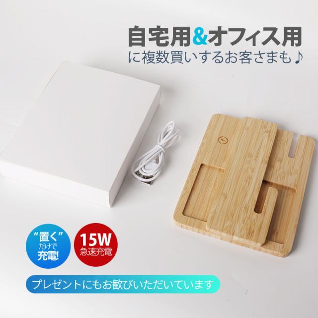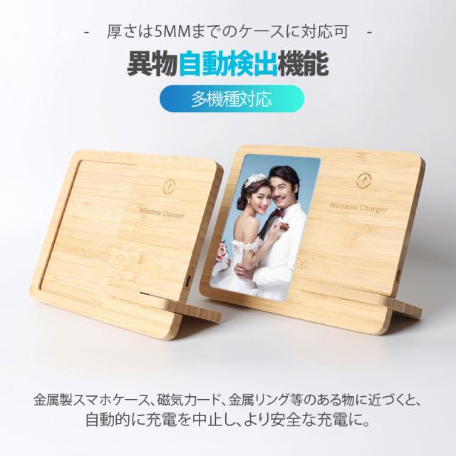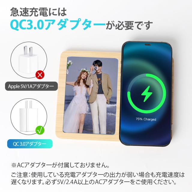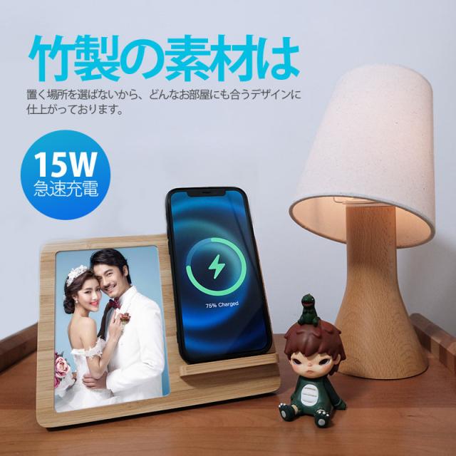 ワイヤレス充電器 木製 フォトフレーム 15w 竹製 iPhone Andriod 置くだけ 充電スタンド 充電器 ワイヤレスチャ