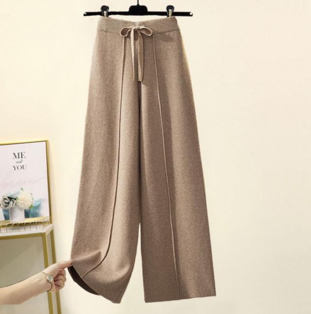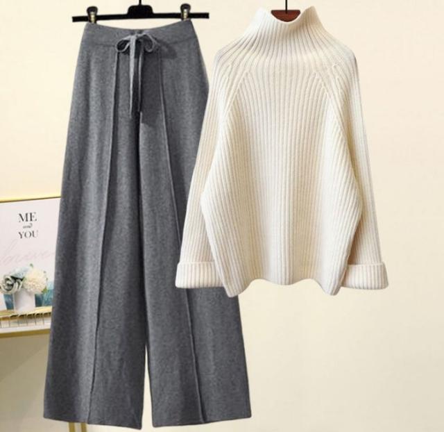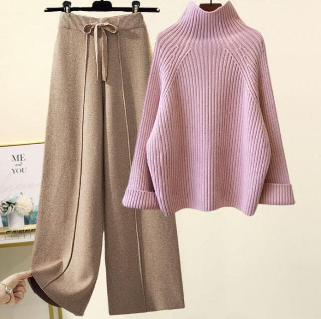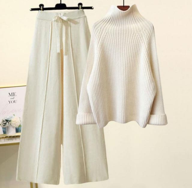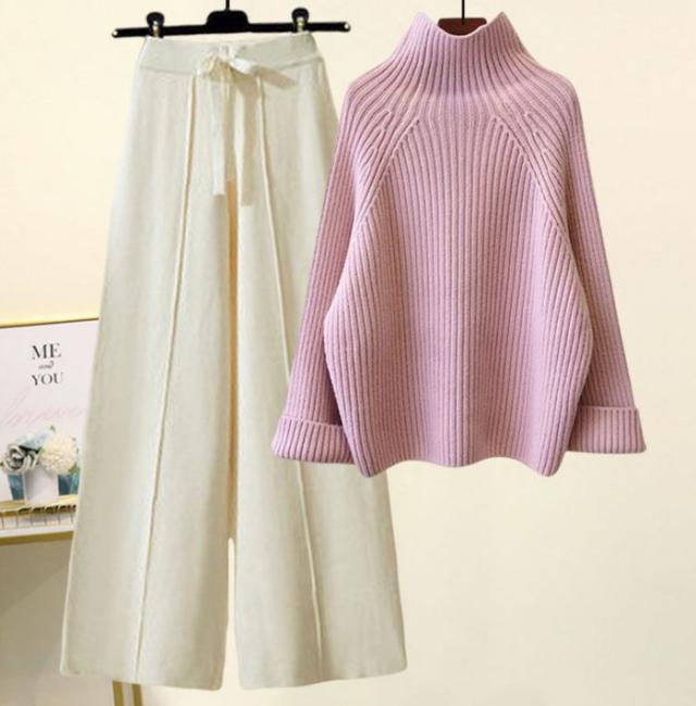 セットアップ レディース ハイネック セーター 長袖 無地 パンツセット ドローストリング 秋冬 シンプル カジュアル