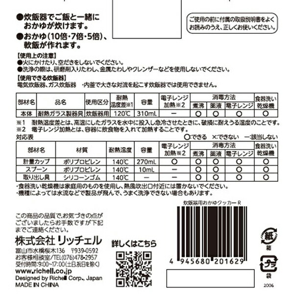 リッチェル アスター 炊飯器用おかゆクッカーR 食育 離乳食 簡単