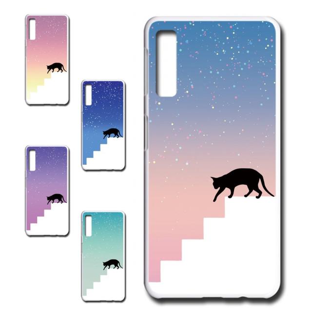 Galaxy A7 ケース ネコ シルエット かわいい 猫柄 夜空 星 ねこ 黒猫 お洒落 猫 カワイイ スマホケース ハードケース プリントケース 猫好き 猫派 おしゃれ galaxy a7 2018 2019 ギャラクシーa7 ぎゃらくしーa7