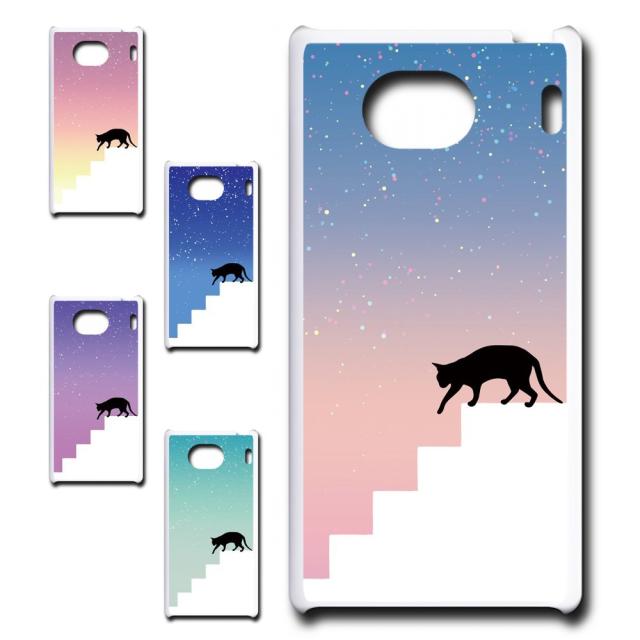 QuaPhoneQX KYV42 ケース ネコ シルエット かわいい 猫柄 夜空 星 ねこ 黒猫 お洒落 猫 カワイイ スマホケース ハードケース プリントケース 猫好き 猫派 おしゃれ キュアフォンqx kyv42 キュアフォーンqx きゅあほんqx