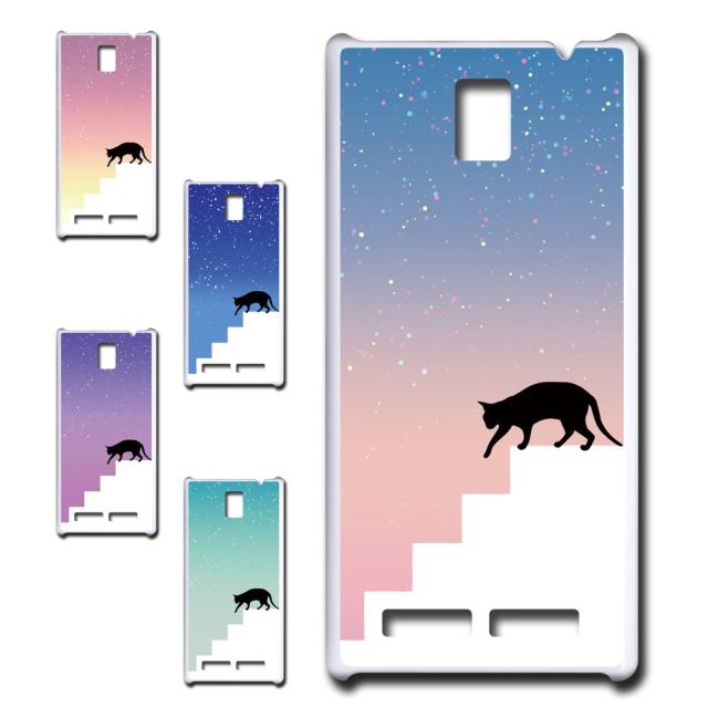 FREETEL Priori4 FTJ162D ケース ネコ シルエット かわいい 猫柄 夜空 星 ねこ 黒猫 お洒落 猫 カワイイ スマホケース ハードケース プリントケース 猫好き 猫派 おしゃれ フリーテルプリオリ4 freetelpriori4