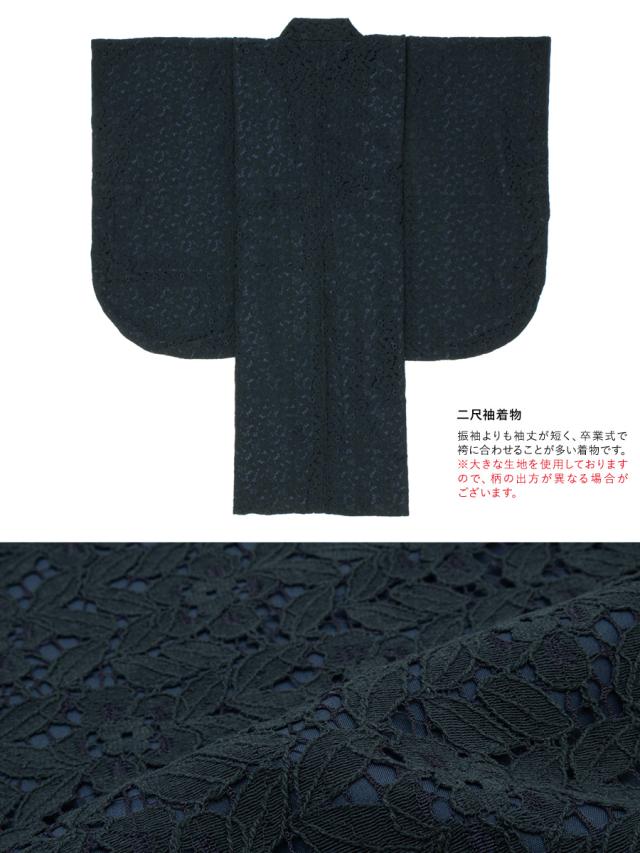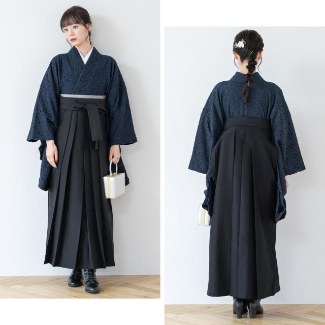 袴セット 卒業式 大学生 小学生 レディース ネイビー系 紺 黒 ブラック レース 花 袴4点セット 和装 着物セット 販売 購入 送料無料