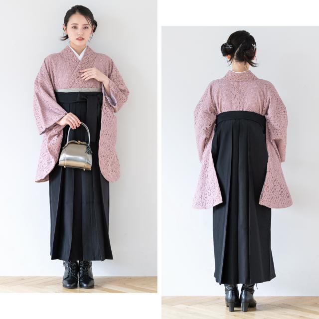 袴セット 卒業式 大学生 小学生 レディース ピンク系 黒 ブラック レース 花 袴4点セット 和装 着物セット 販売 購入 送料無料