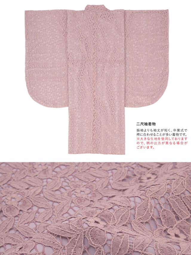 着物は、透け感のある花の文様のレース生地が優美なデザインです。