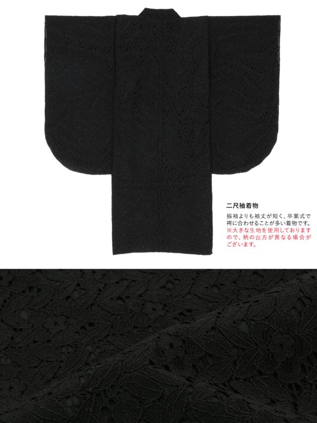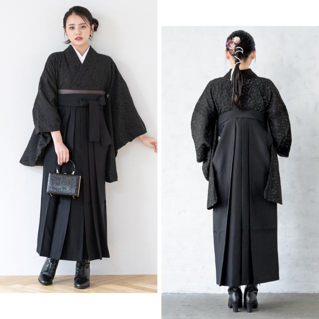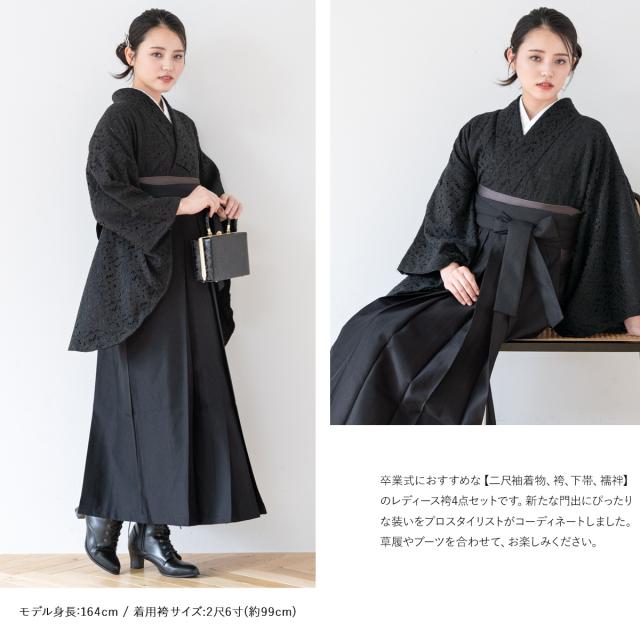 袴セット 卒業式 大学生 小学生 レディース ブラック系 黒 レース 花 袴4点セット 和装 着物セット 販売 購入 送料無料