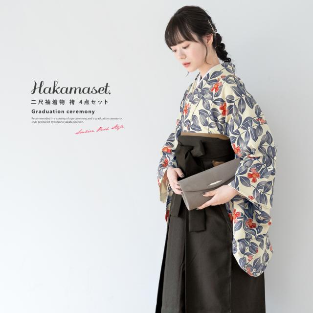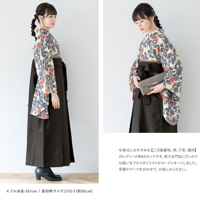 袴セット 卒業式 大学生 小学生 レディース クリーム グレー 朱色 チャコール 牡丹 桜 みすずうた 袴4点セット 和装 着物セット 販売 購入 送料無料