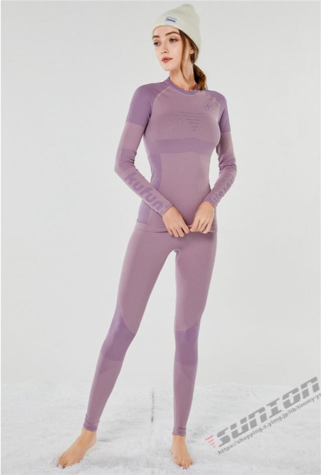 スノーウェア インナーシャツ 長袖 吸湿発熱 レディース インナーパンツ スキー スノボ 防寒 インナータイツ 上下セット