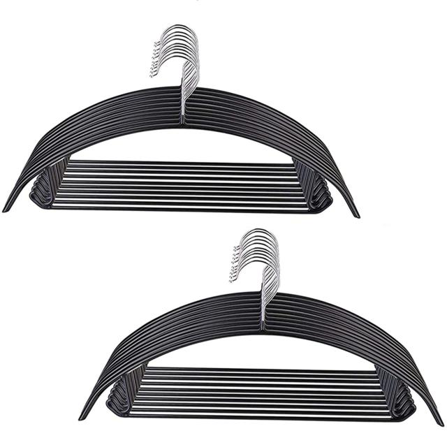 【最新版】:滑り止めのゴムコーティングで主にコーティングされています。力学の原理により、半円のデザインが肩の突起を取り除き、服の形をキープします。ぶら下がったリボンがついていない服に適します。<br>【高品質材料】:丈夫耐用-ステンレス鋼製で、滑り止めPVCコーティングをしています。頑丈な材料、頑丈な加工で作られており、防錆効果もあります。<br>【完璧な耐荷重】:各ハンガーの耐荷重が約8KGで、冬はコートやセーター、ダウンジャケットを吊るすのに適しています。<br>【抜群な設計】:このハンガーは両端にフックがあり、スカートやベストなどのストラップを固定することができます。<br>【コンパクトup】:木製ハンガーよりもはるかに狭いスペースを持っていますが、服をしっかりキープするのに十分な強度があり、プラスチックのハンガーよりも強く持ちます。<br>◆商品名:Cozyone ハンガー 20本組 ジャケットハンガー 収納ハンガー スリムタイプ 人体ハンガー 洗濯 衣類が滑り落ちない 型崩れ防止 スリムハン<br>