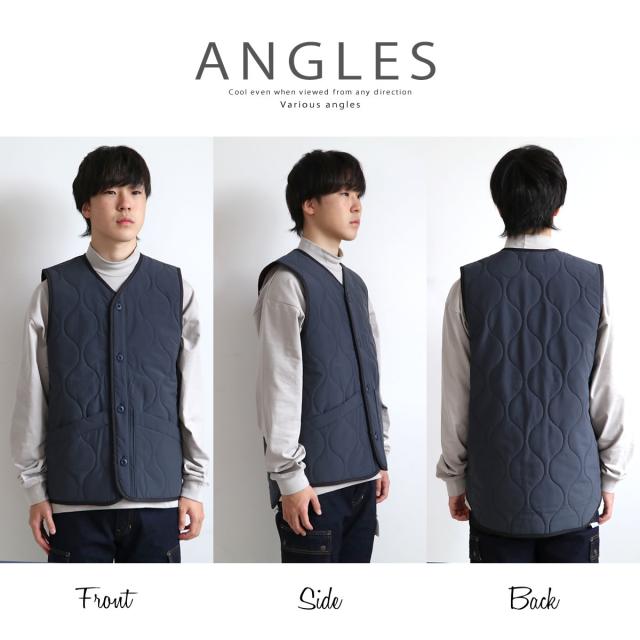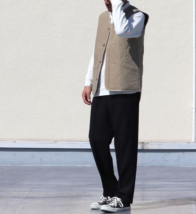レイヤードの着こなしに今では欠かせなくなったアイテム。インナーベストとしても重宝するアイテムですね。
