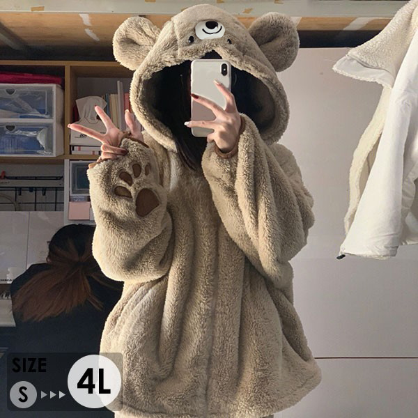熊 ルームウェア もこもこ パジャマ 上下セット 大きいサイズ 冬 長袖 フード付き 前開き 寝巻き 部屋着 暖かい あったか 着ぐるみ モコモコ 大人用 ふわふわ 動物 レディース 女性用 かわいい 可愛い ギフト プレゼント dh102n1n1l9