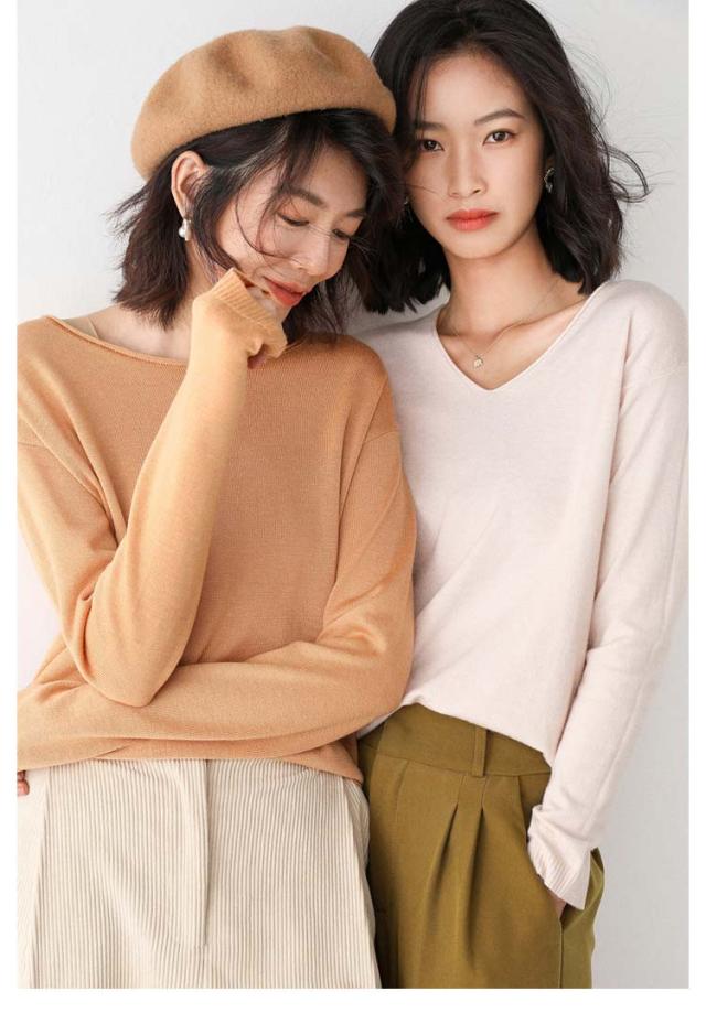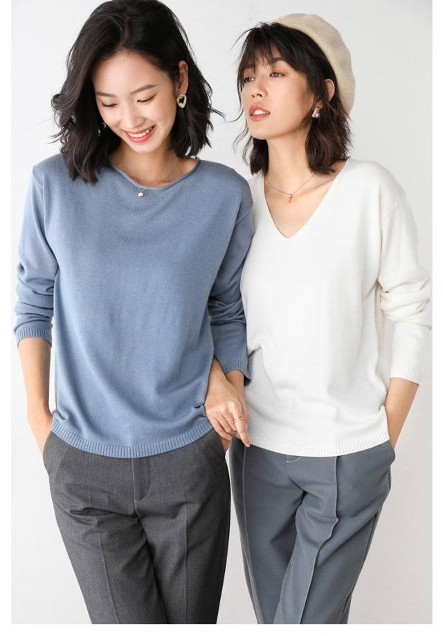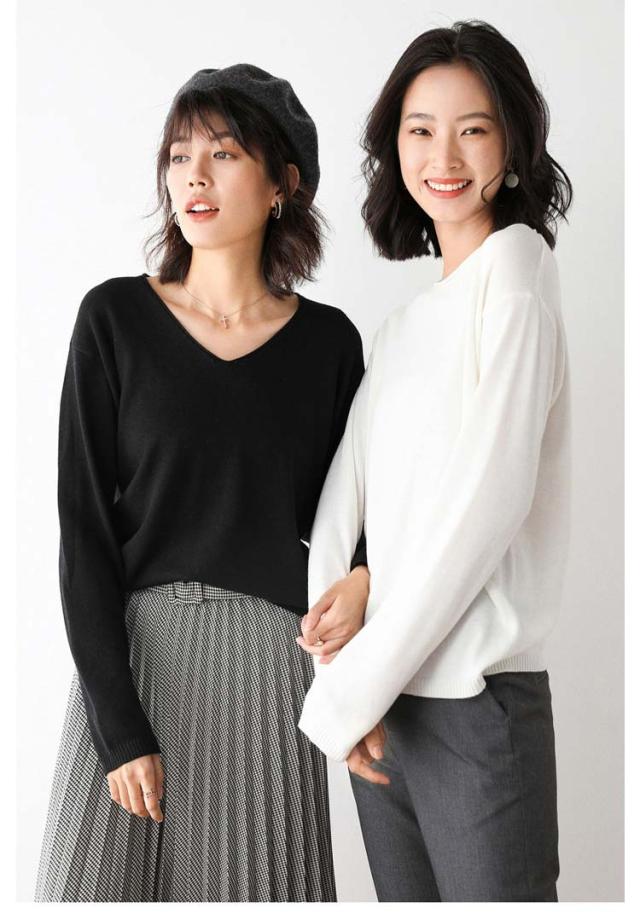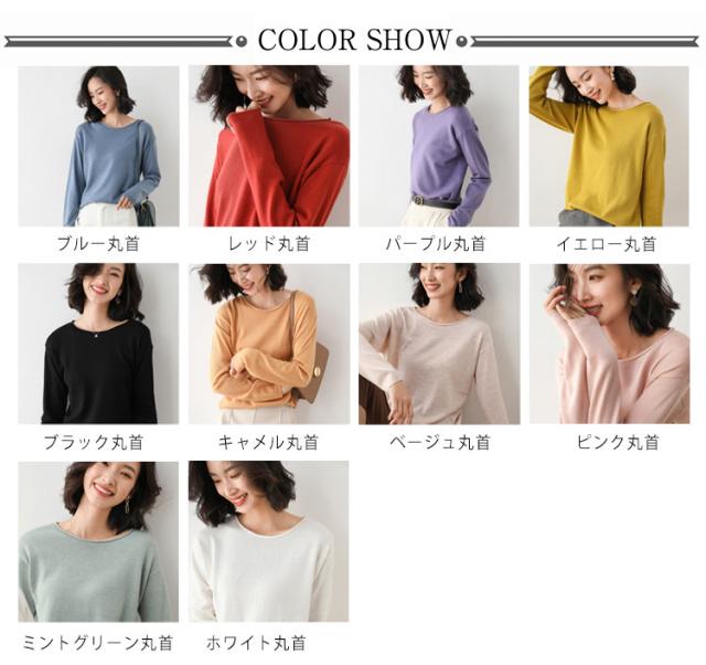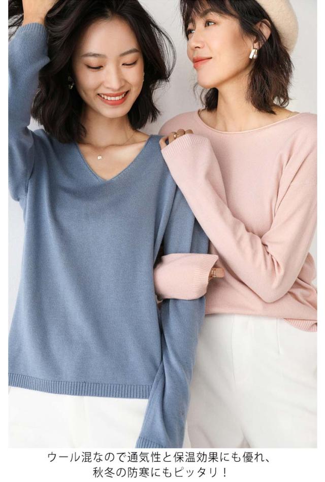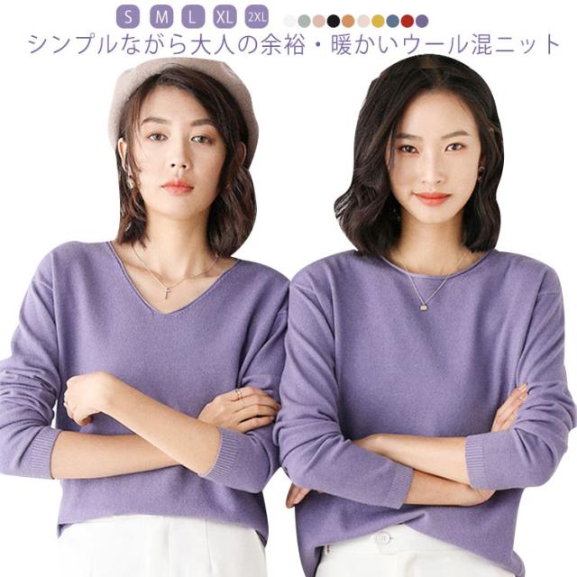 10色展開! ウール混 ニット セーター 暖かい 長袖 インナー プルオーバー レディース 秋 冬 トップス Vネック ボートネック クルーネック 丸首 カシミアタッチニット 春 薄手 ゆったり 無地 くすみカラー オフィス 送料無料