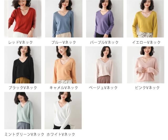 | 色 | ホワイト丸首 ミントグリーン丸首 ピンク丸首 ブラック丸首 キャメル丸首 ベージュ丸首 イエロー丸首 ブルー丸首 レッド丸首 パープル丸首 ホワイトVネック ミントグリーンVネック ピンクVネック ブラックVネック キャメルVネック ベージュVネック イエローVネック ブルーVネック レッドVネック パープルVネック |