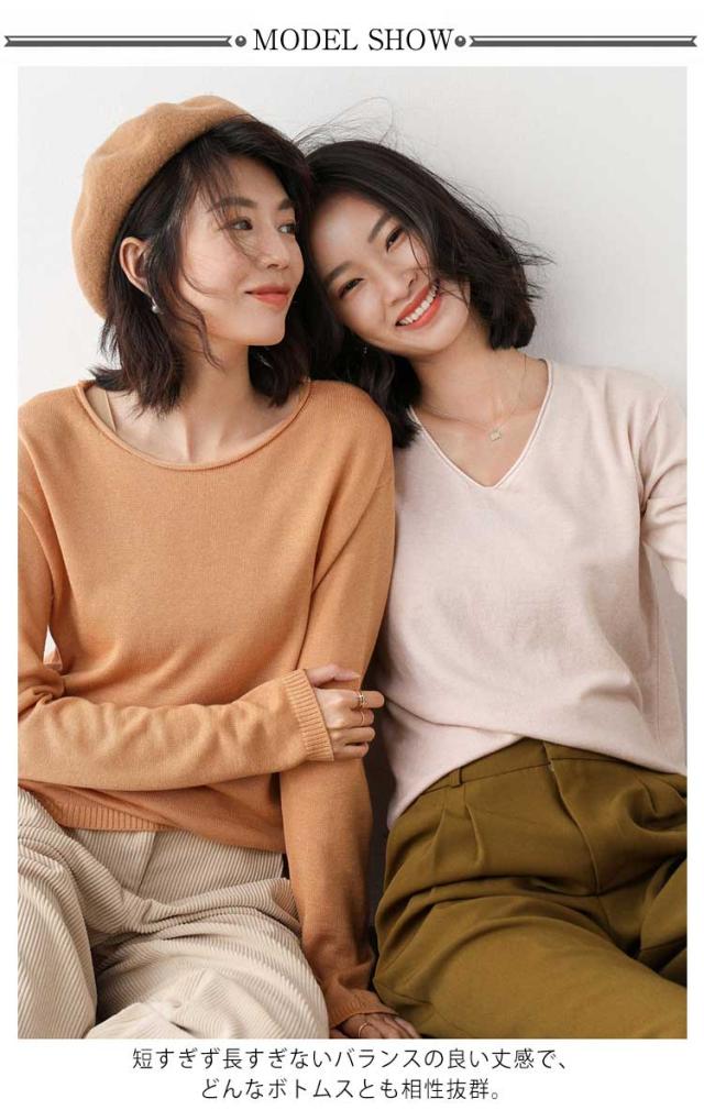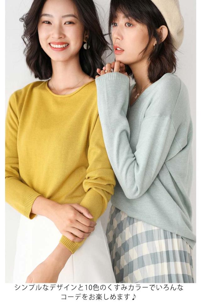 | シンプルながら大人の余裕・暖かいウール混ニット。 チクチク感のない肌触りの柔らかいニット素材です。 ウール混なので通気性と保温効果にも優れ、秋冬の防寒にもピッタリ! デコルテが綺麗に見えるVネックとボートネックで、きれいめな印象に。 シンプルなデザインと10色のくすみカラーでいろんなコーデをお楽しめます♪ 短すぎず長すぎないバランスの良い丈感で、どんなボトムスとも相性抜群。 お仕事コーデにも普段着でも使える優秀なアイテムです! | |