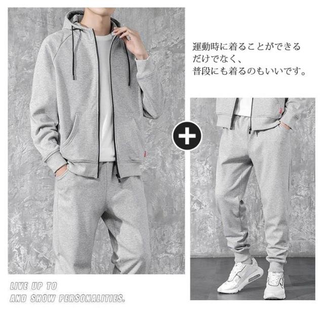 トレーニングウェア 上下 パーカー 裏起毛 メンズ 上下セット 運動服 選べる2タイプ!ジャージ セットアップ ジップアップ プルオーバー フード付き カジュアル スポーツウェア ジム 部屋着 大きいサイズ