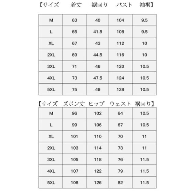 | サイズ | M L XL 2XL 3XL 4XL 5XL |
