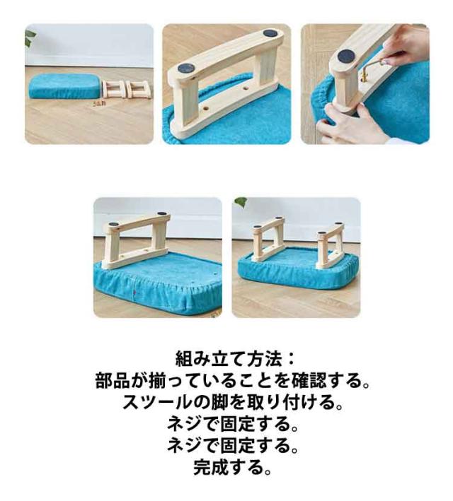 | 【綿麻・北欧風】【6color】【カバー洗える】 木製脚と麻布張りの小さいイスは、ソファに座ってくつろぐ際のオットマン(足置きいす)がわりにもなる1人掛けロースツール。 子供のお食事、お絵描き用、玄関で靴の脱ぎ履きに、リビングでオットマンにもピッタリ♪ スクエアの小型椅子は足付きで安定感があります。 木製の脚の底には傷防止と滑り止めが付いています。 カバーは取外しでき、洗濯機で洗えます。いつでも清潔に使えて安心♪ シンプルでコンパクトサイズなので、インテリアに馴染みやすくお部屋のどこにでも置いていただけます。 <使い方例> ・ソファーと合わせて足置きとして ・来客時の椅子として ・リビングのサイドテーブルや寝室のナイトテーブルとして ・玄関での腰掛けとして 組み立て方法: 部品が揃っていることを確認する。 スツールの脚を取り付ける。 ネジで固定する。 ネジで固定する。 完成する。 | |