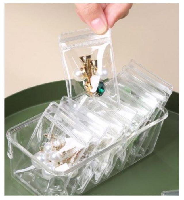 チャック袋 50枚入 アクセサリー チャック付きポリ袋 透明 クリア 厚手 ジュエリーバック 小分け袋 ジュエリーポーチ PVC チャック袋 アクセサリー 袋 チャック付 整理袋 収納袋 ラッピング 小袋 密封 変色防止 防水 防湿 防カビ 収納袋