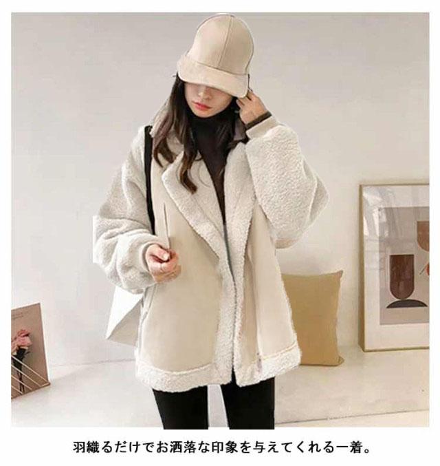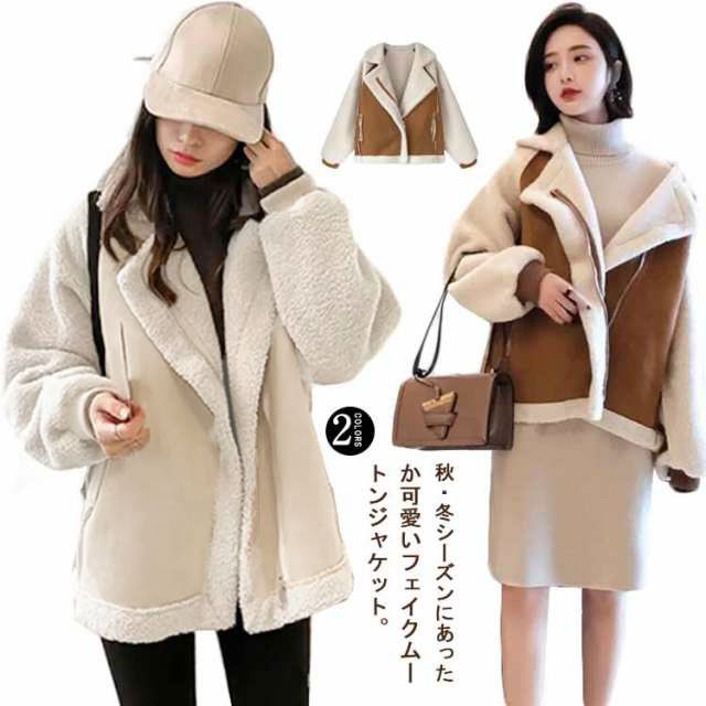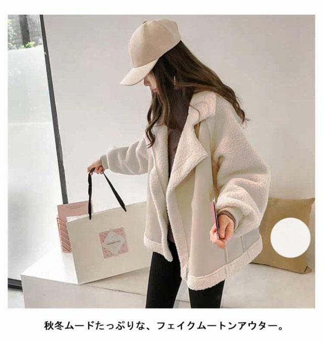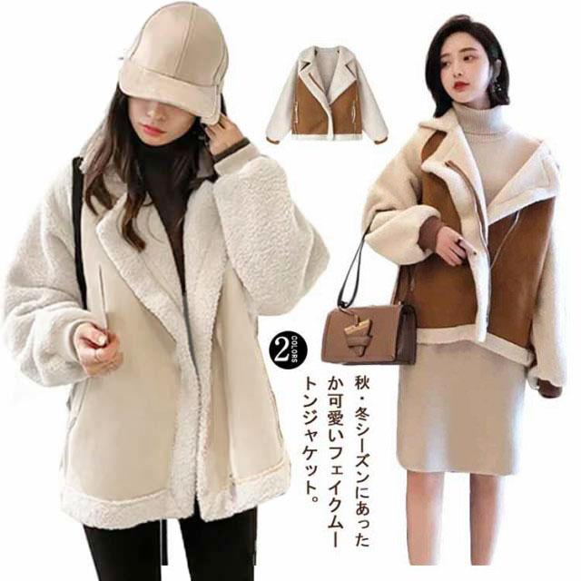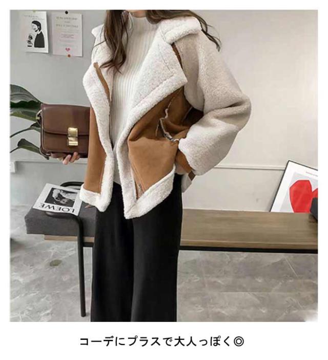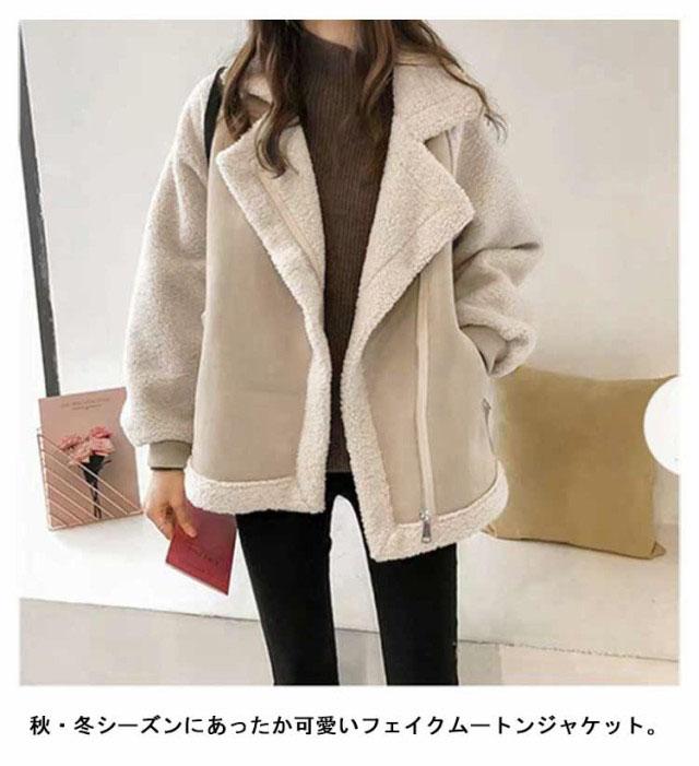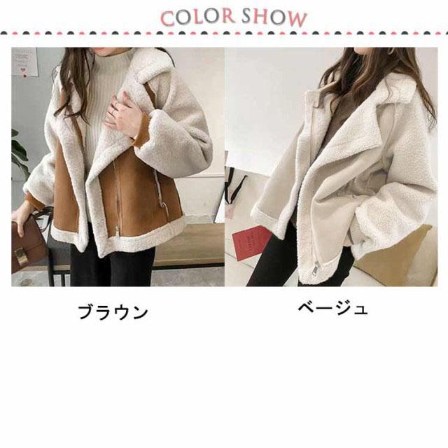 ムートンジャケット フェイクムートン ボアコート ショート丈 ライダースジャケット 裏ボア 防寒物 アウター コート 暖かい 秋冬 おしゃれ レディース ベージュ ブラウン