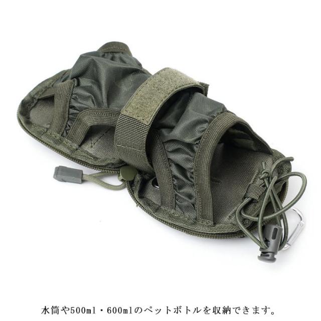 | アウトドアなど様々な場面で使用することができます。ペットボトルホルダー 登山、旅行、探険、釣り、徒歩旅行、サイクリング・自転車、ジョギング・に最適です。 水筒や500ml・600mlのペットボトルを収納できます。 折りたたみできて、収納ケースと一体型のため、広げるとそのまま利用できるので、収納ケースをしまったり無くしたりする心配がありません。 カラビナが付属しているのでリュックや・カバンなどにベルトに取り付けたりぶら下げたりするのに便利です。 | |