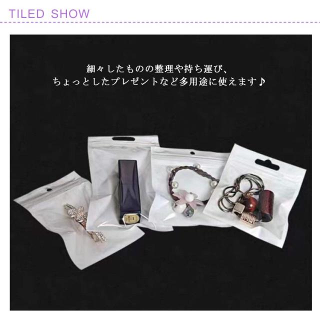 ジュエリー 収納袋 チャック付 袋 小分け袋 ジッパーバッグ 小袋 アクセサリー 袋 整理袋 穴あき ホワイト 透明 防水 収納 ラッピング チャック付きポリ袋 100枚入 小物収納 平袋 密封 包装用品 PVC チャック袋
