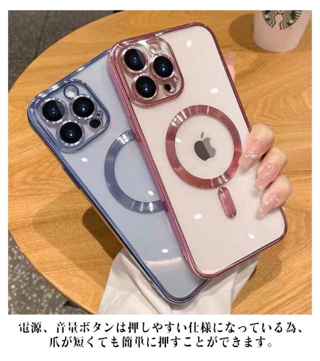 | 【レンズ付きケース】【magsafe対応 スマホケース】 メッキ加工を施した上品な輝きを放つ高級感が持ちながら、衝撃から守るMagSafe対応のiPhone用ケースです。 マグネットが内蔵されており、MagSafe対応充電器および各種アクセサリーが利用できます。 前面フレーム部分は画面よりもやや高め設計され画面を下にして置いてもスクリーンが擦れず安心。 丈夫で軽いTPU素材のソフトケースで、柔軟性が抜群 電源、音量ボタンは押しやすい仕様になっている為、爪が短くても簡単に押すことができます。 | |