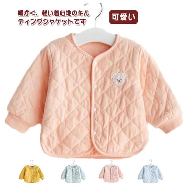 ノーカラー コート キッズ アウター 中綿コート 中綿ジャケット 子供服 ジャケット キルティングジャケット 上着 暖かい 女の子 男の子 ジュニア 羽織 子供コート 冬服 軽量 厚手 秋冬 防寒 無地 可愛い あったか 大きめサイズ 通園 73 80 90 100 110 送料無料