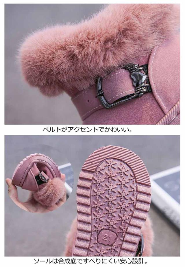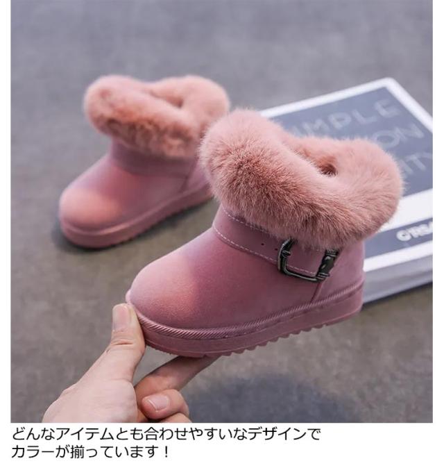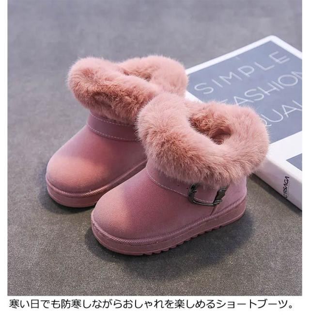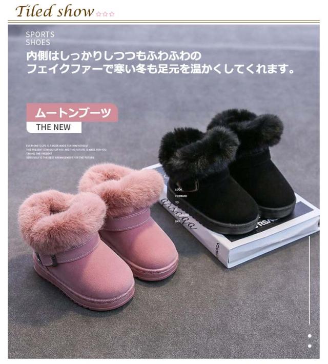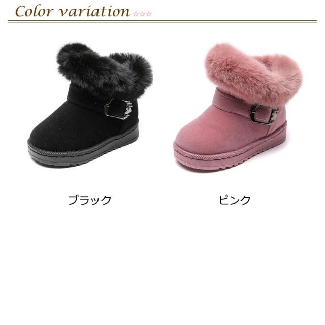 ムートンブーツ キッズ ブーツ 子供靴 秋冬 防寒ブーツ ベルト ショートブーツ スエード 裏起毛 ふわふわ もこもこ ファー 男の子 女の子 キッズ靴 防寒 保温 暖かい 歩きやすい 滑りにくい スノーブーツ 冬靴 フェイクムートン ピンク 黒 ブラック 【送無】