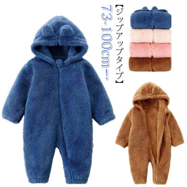 ふわふわ ロンパース カバーオール パジャマ ベビー 秋冬 もこもこ ルームウェア 前開き 女の子 男の子 オールインワン ジャンプスーツ 可愛い 寝間着 厚手 つなぎ ボディスーツ 赤ちゃん 防寒 肌着 キッズ 幼児 ベビーウェア ベビー服 冬 73 80 90 100 送料無料