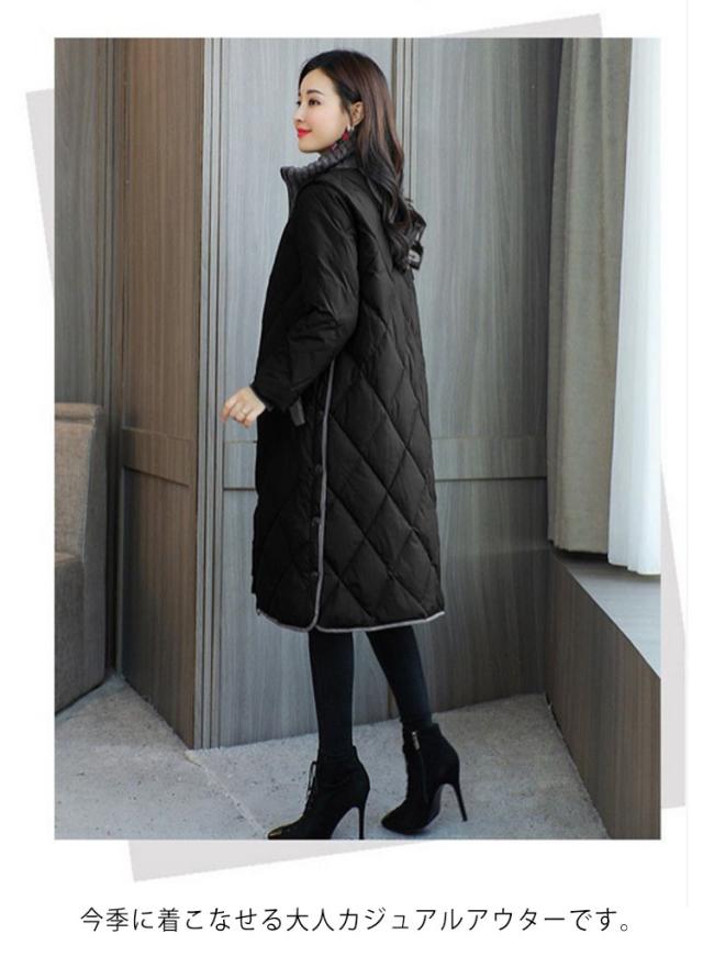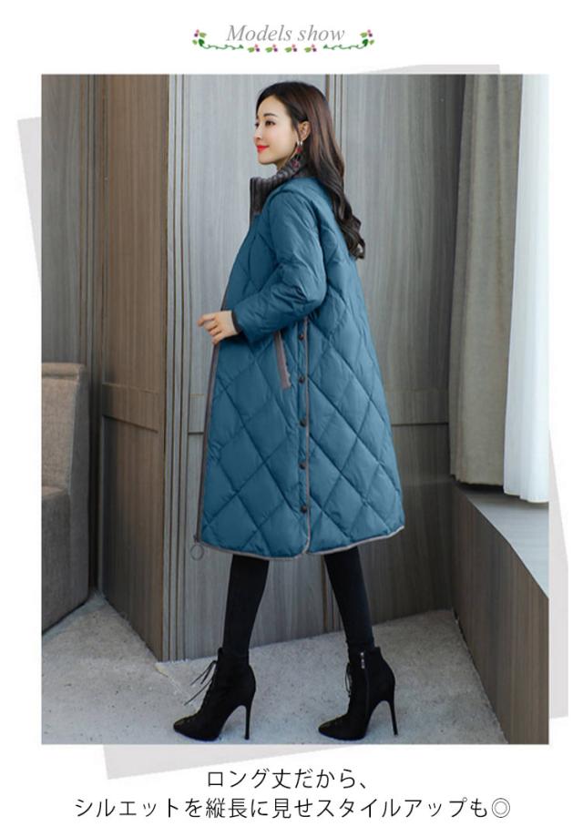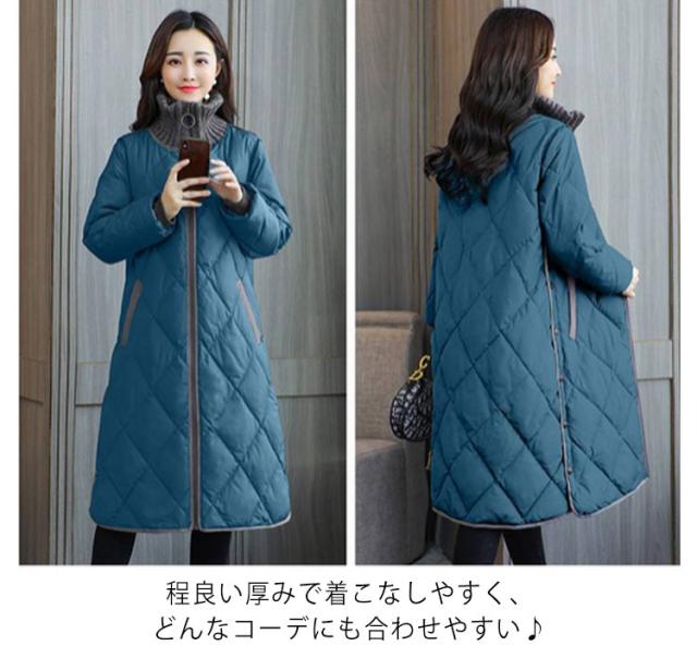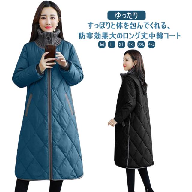 中綿コート 暖かい 秋冬コート レディース 防寒 キルティングコート ママコート ロング 50代 アウター 羽織 ロングコート ゆったり コート あったか ノーカラージャケット 防寒コート 体型カバー カジュアル おしゃれ 秋 長袖 韓国風 20代 40代 30代 冬