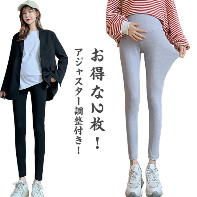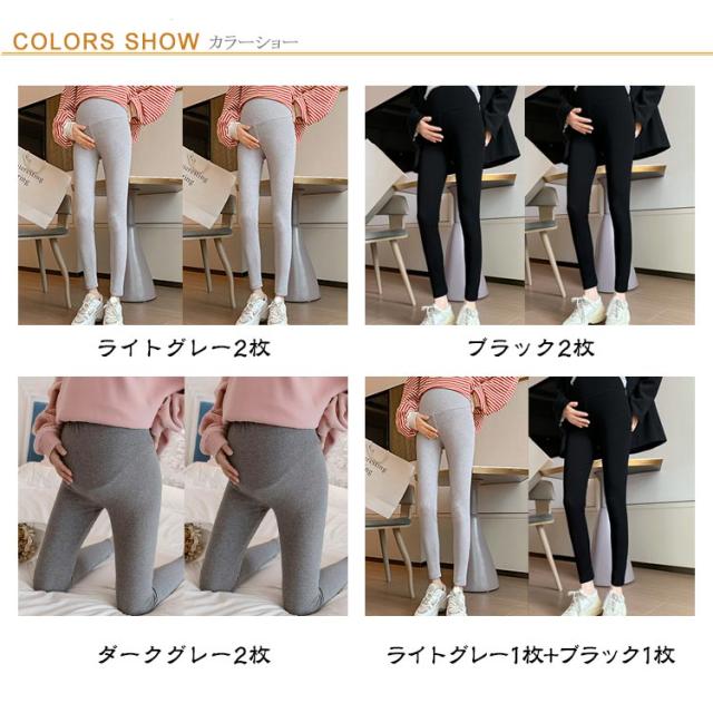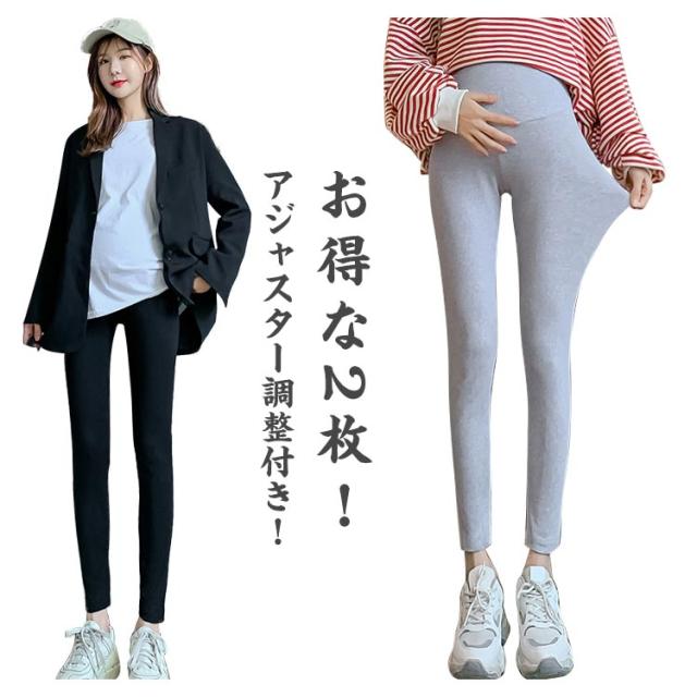 マタニティ スパッツ レギンス パンツ 部屋着 グレー 2枚組 黒 ブラック 春秋 アジャスター調整付き レディース マタニティレギンス レギンス 妊婦 2枚組 スパッツ パンツ レディース 妊婦 ストレッチ マタニティ