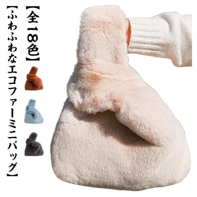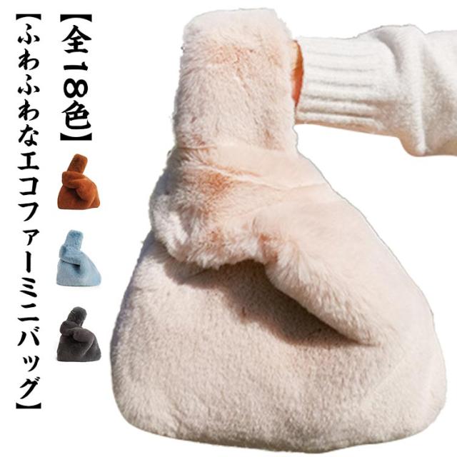 ファー ミニ エコバッグ マルシェバッグ トートバッグ レディース 18色 トレンド 韓国 エコファー マルシェ ふわふわ ハンドバッグ ミニバッグ エコファーミニバッグ バッグ もけもけ きれいめ サブバッグ エレガント きれいめ おしゃれ 縦型