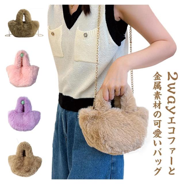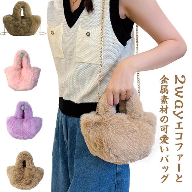 バッグ ショルダーバッグ ハンドバッグ かばん トート レディース ふわふわ エコファーバッグ カバン 送料無料 ファー エコファー トートバッグ 鞄 ファーバッグ シンプル 軽い 2way 肩掛け 斜め掛け 斜めがけ 軽量